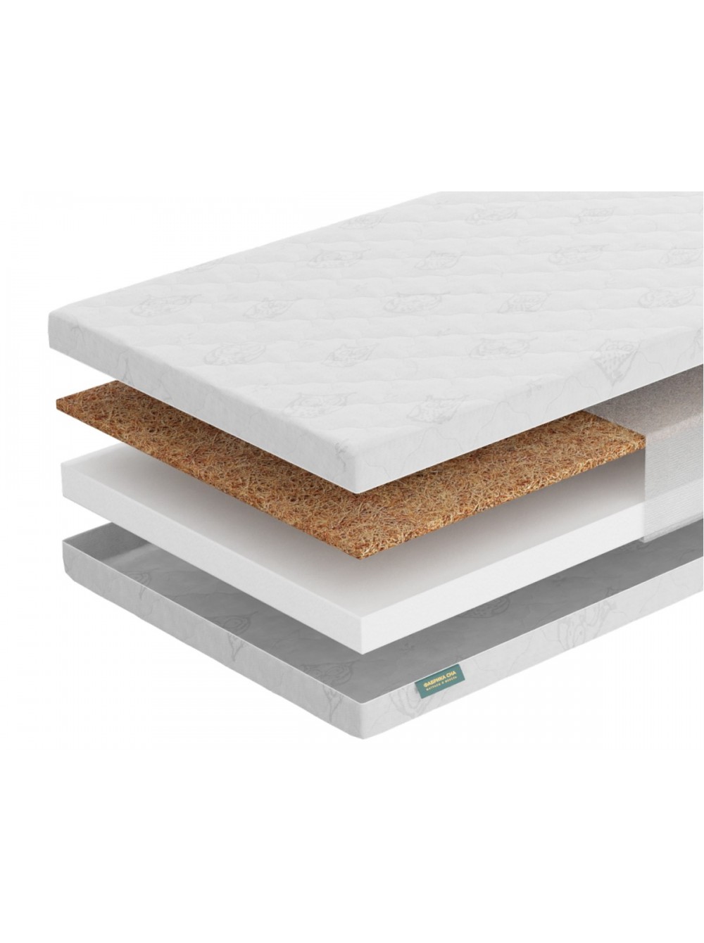2. Латексированная кокосовая койра (2см) Кокосовая койра - 100% натуральный материал с уникальными свойствами. Койра, скрепленная натуральным латексом, дает объемную упругую воздухопроницаемую структуру. Такой материал используется в моделях, предназначенных для любителей более жесткого и упругого спального места. Естественные вентиляционные качества, эластичность, прочность, упругость, гигиеничность и антиаллергенность, наряду с очень долгим сроком службы, делают этот материал идеальным для наполнения матраса.