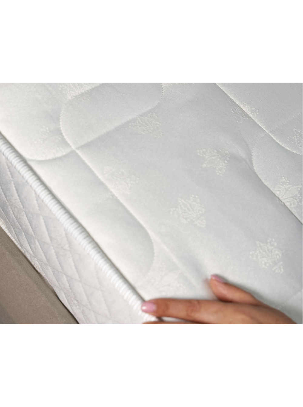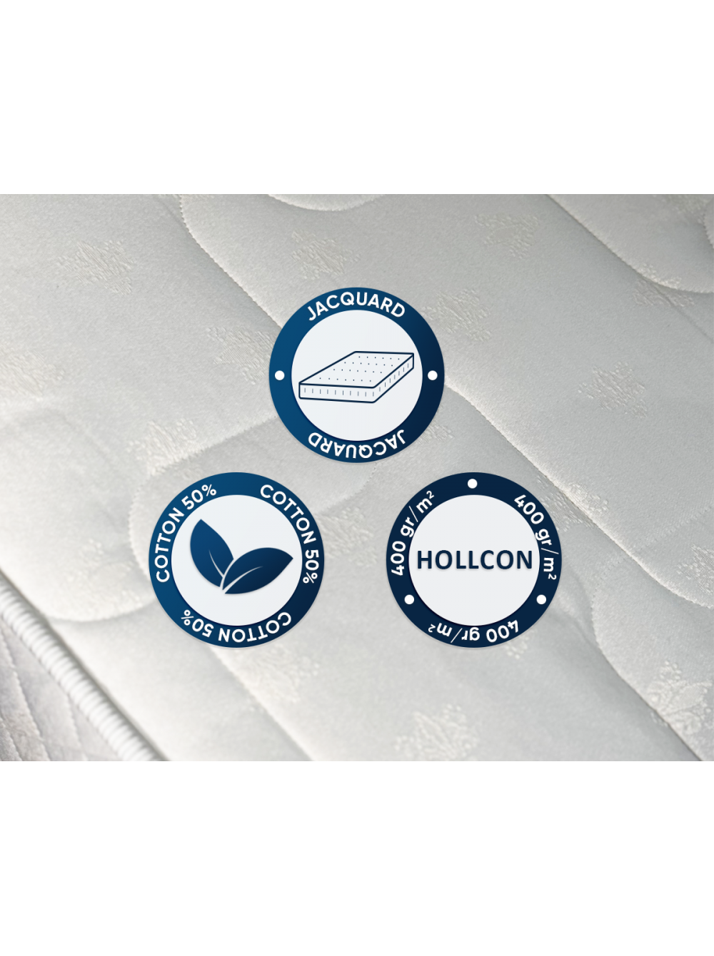 1.Жаккардовый чехол  Чехол выполнен из прочной, износостойкой ткани жаккард люкс, простеганной на объемном холконе в сочетании с пеной Memori Foam. Благодаря чему в матрасе создается дополнительный анатомический слой, продлевается срок эксплуатации, изделие приобретает неповторимый внешний вид. 3D сетка по периметру матраса обеспечивает хорошую вентилируемость и сохраняет оптимальный микроклимат во время сна.